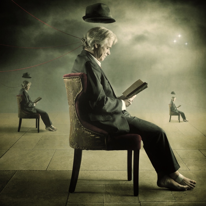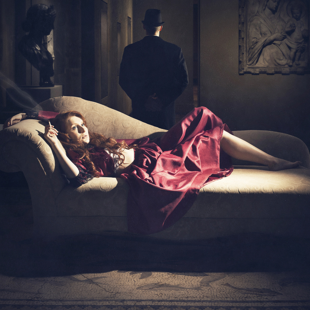 This topic is something I am getting more and more vocal about, because the very word “inspiration,” aside from being overused, is now becoming a pretty euphemism for just plain stealing or copying. And yes, you are correct in that it’s all been done before, and that is an argument those who do it knowingly hide behind. It is one thing if you emulate a favorite portrait photographer and approximate his or her lighting style, which I see - there are many out there copying Joel Grimes, but it’s quite another thing in the Conceptual genre because you are dealing with a fairly small and unique genre. Plagiarism becomes more obvious. It also is symptomatic of maturity. You start out superficially. You see something that excites you, something unique or visually powerful. Something inside you gets motivated and you say “I want to do that too!” And so you copy it. Yes, it is part of learning, and it’s natural, but the truth is many never mature into artists in their own right - they just continue to emulate other works. Perhaps it is a lack of confidence, a lack of depth or just nothing to say, personally. The thing everyone should be looking at, when viewing something that inspires, is not what they see visually, but rather, what is the connection between the concept and how it is expressed? Dive deeper, past the visuals, and look at the visual language. Obviously there is a lot of Magritte influence in my work, less now, but certainly a lot in the earlier stuff. I began to see a lot of Magritte showing up in the places I was sharing my work, but here is the difference: I never copied him, I never approximated a piece of his. I see so many people copying his “The Lovers” or having a damn apple in front of a face - all you are doing is copying a pre-existing work. I was always interested in how he expressed an idea, not with what he literally used to express it. It’s a fine line. Don’t do another image with a damned apple in front of a face! Instead, ask why it is there, what does it mean, what is the relationship between idea and what he used to present it? In the time I have been working in conceptual, I have seen legions of copycats all doing the same things over and over, to the point of rendering something cliche. The floating or levitating model. The baby powder shots. The endless parade of girls in the woods holding lanterns. The mile long dresses. Enough already. I call a lot of them “Brooke-alikes” because so many of them literally copy the work of Brooke Shaden. Ask why the person is levitating - is there a reason for it? Is there a meaning behind it? Don’t just do it because you think it looks neat. I went off on a tangent there, but it is a hot button issue with me. As for my own process or what inspires me…hmmm. As I explained, I don’t really go into a shoot with ideas. I let them unfold as I edit. I think it’s more akin to painting - starting with a blank canvas and allowing something to come. Yes there is a lot of work out there I think is amazing, and yes, there are pieces out there that I wish I had created, but I would not feel like a real artist if I copied those “inspirations.” I will give you an example: I am often inspired by lyrics of songs, and have used many of them as the basis for my pieces. I recently did one based on a Joni Mitchell song called “The Hissing of Summer Lawns.” Now, there is nothing literally in my piece from the lyric itself. I saw the shot of my model and thought “what is she doing?” “Where is she?” “What is she looking at?” I think the end result serves the lyric, but does not copy it. So there is something that inspired me but it is still my own, I made it my own. I took an inspiration and filtered it through me. I guess that’s what it comes down to - develop your personal filter - otherwise you are just stealing.