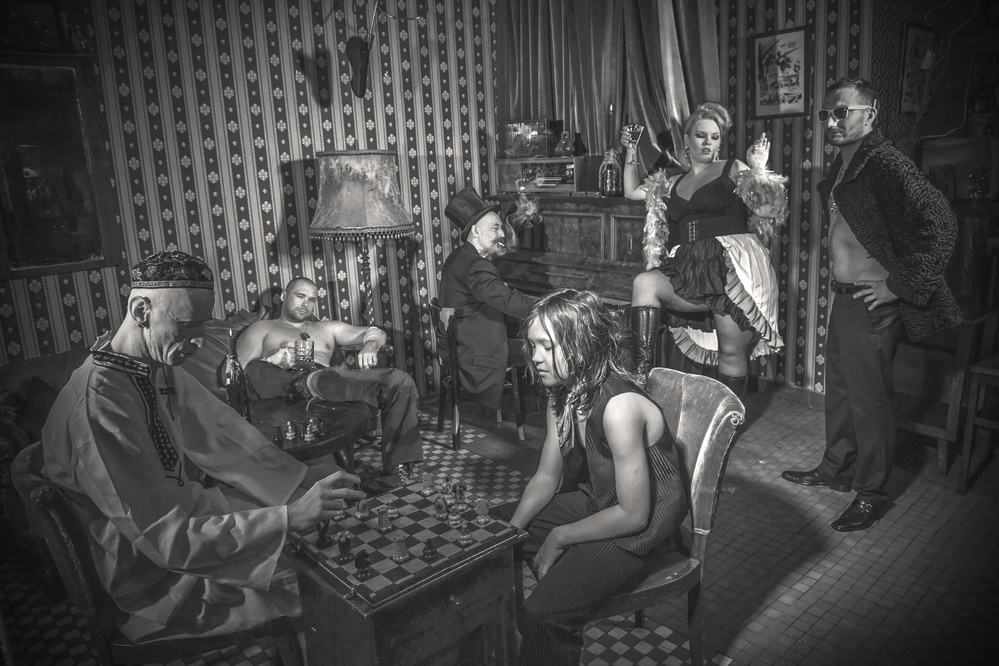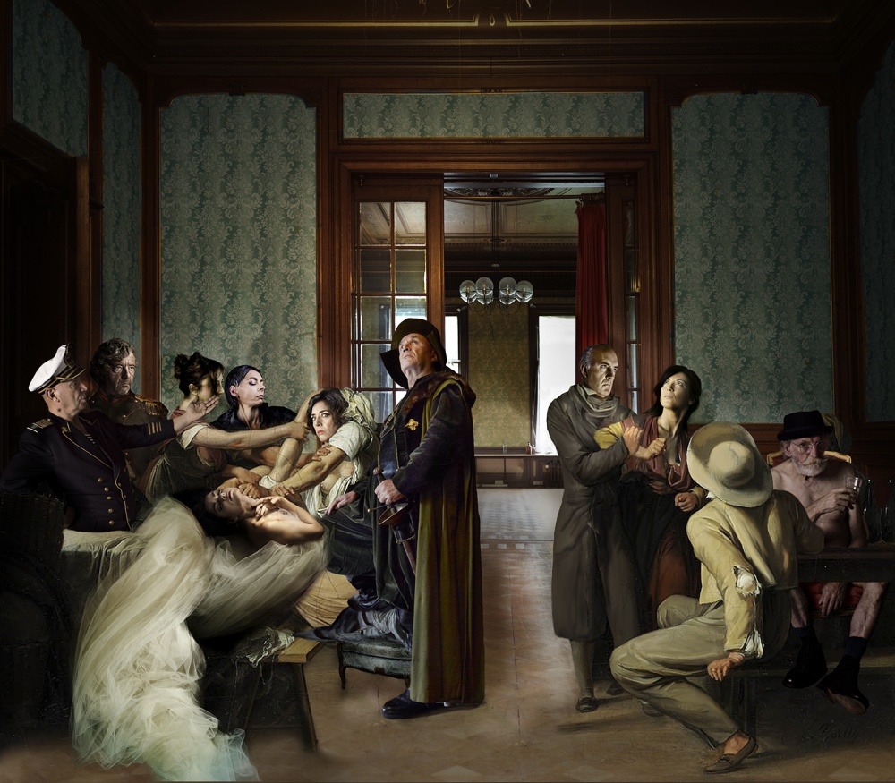 Creating a fiction photograph requires a meticulous preparation, as described by Francisco Hermandez Marzal: "I start making sketches, drawings, to define the whole composition idea, then I look for iconographic references, props, locations, models/actors and once I have everything, I begin with the shooting."