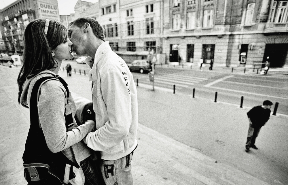 I didn’t start it with the street photography. I didn’t know about this trend, neither I had a clue that I can practice it. I was initially photographing my cat, the concerts I was attending, the landscapes seen within my trips in Romania or abroad. All done with a small digital camera (Olympus c300 and then c5050) who has dis-inhibited me and by means of which I passed over the carefully chosen and counted 36 frames barrier for film. I have started to experiment and this took me about 2-3 years. I didn’t have a certain style, I was shooting everything, but I was trying to see it differently, to deepen the perception, to look beyond the appearances. Until one day when I felt that I have exhausted everything I know about the digital camera and I felt to go on film. It was a time when everybody was selling the film cameras to replace them with digital ones, so I managed to acquire professional photo technique at a very good price. From Canon AE1 to Canon T90 and then to Nikon F5, with wide and tele lens, fast and wide aperture, I have simply thrown myself in the nothingness of everyday life and I start shooting instinctively, closing any thought and leaving the intuition and the reactions to lead me. What I have found was fabulous! From that moment I knew what I'll do next. So I have realized that I was chosen by the street photography to go on the decisive moment classic vein, which supposes the harmonization ability with the entire environment and to seize the optimal microscopic point of this ephemeral moment. And to be there, shooting. It appeared the magic and the awareness of a new censorial and emotional world. By searching, I have found out!