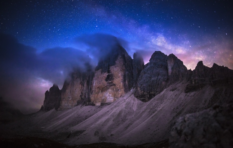 I've been to the Tre Cime di Lavaredo, the famous mountains in the Dolomites of northeastern Italy, nearly one hundred times. I’ve been there during every season, at every time of day, to hike, rock climb and snowshoe. Having photographed the steep cliffs and rocks from every angle, I was curious to see what the mountain would look at night with the Milky Way as the backdrop.