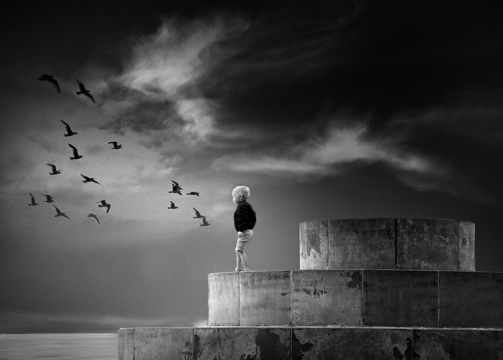 Many fine art photographers prefer black and white images for their tendency to distance the subject matter from reality. Humans see the world in colour, and a rendition of the world in monochrome makes us pause and look closely. Removing colour from a picture helps the viewer to focus on a subject’s emotional state.