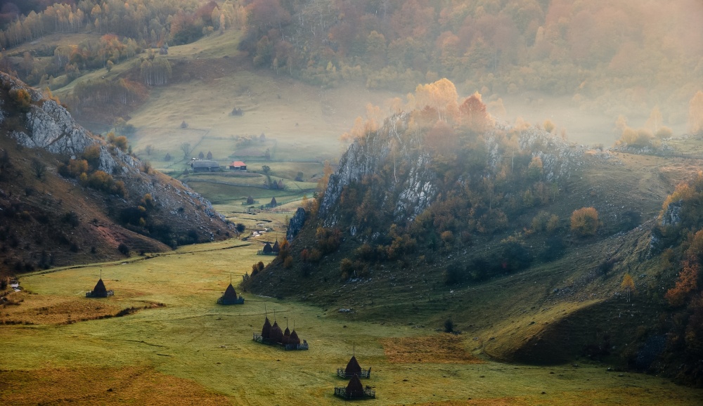 The snake form of the river and the multiple rocky peaks surrounding the valley make Fundătura Ponorului a unique location. On top of that all, homesteads and households with their fences look like a theatre stage scene having all elements to create one of the best photography spots in Romania and maybe world wide?