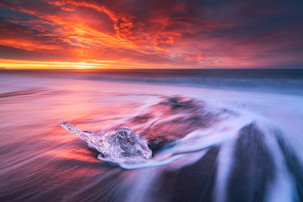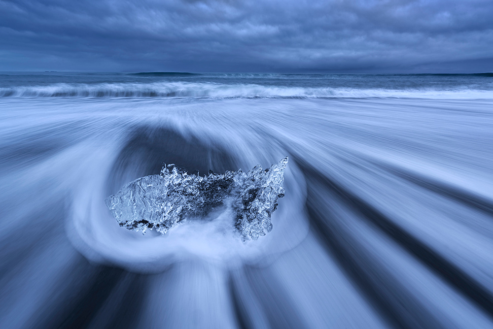 Making long exposure images of the icebergs and waves hitting them is a very famous recipe of making pictures here. The leading lines created by receding waters and the still icebergs create a wonderful visual.