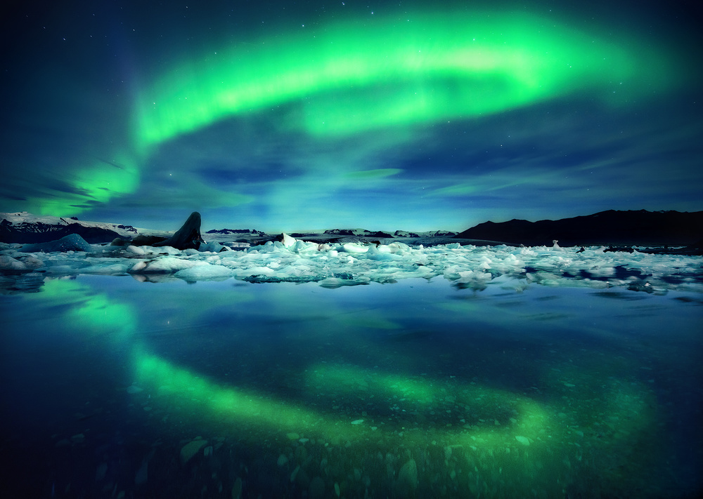During the magical nights the aurora colouring up the entire lagoon can be one in a lifetime opportunity for many.