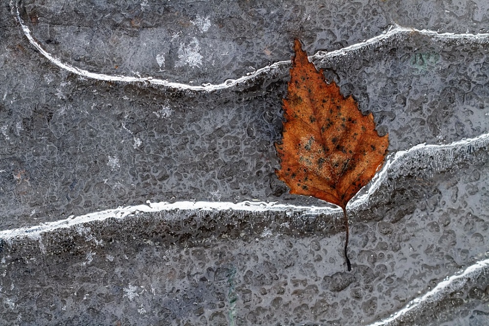Take time to look closely at details, where you may find excellent patterns like trapped bubbles in the frozen water surfaces, frost on leaves or even spiders’ webs.
