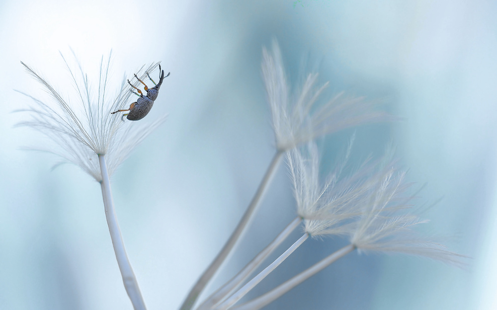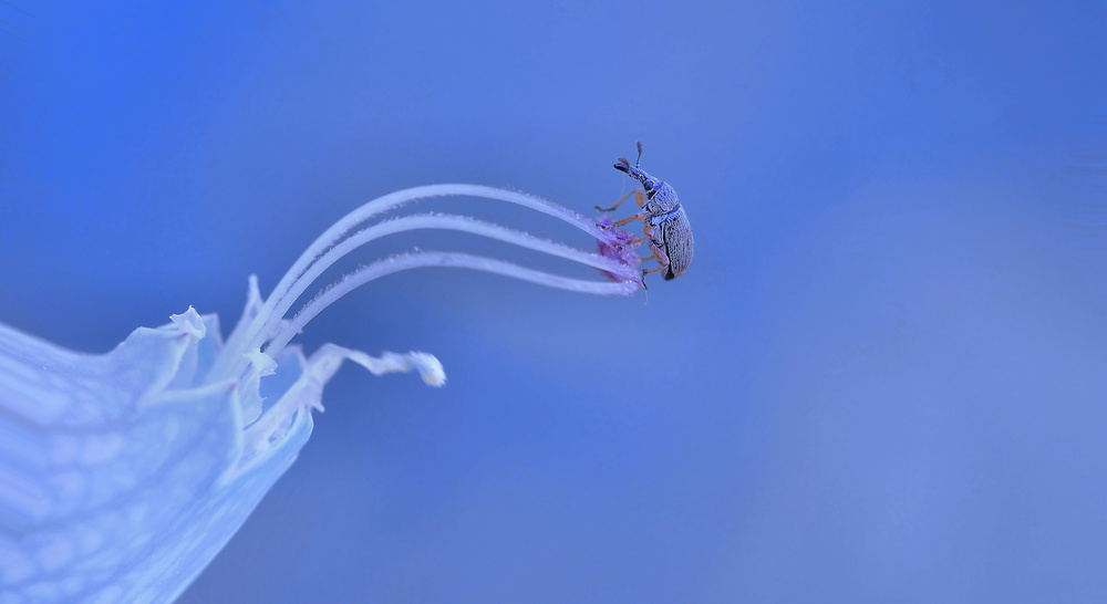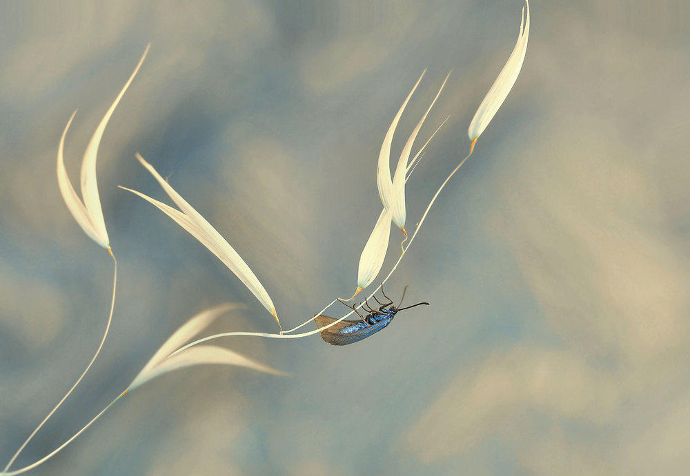 First of all, I try to be in osmosis with the little insect I want to photograph. Patience, do not make sudden gestures, and wait for the perfect time. I do not prepare anything, all my macros are made on gut instinct, and freehand.