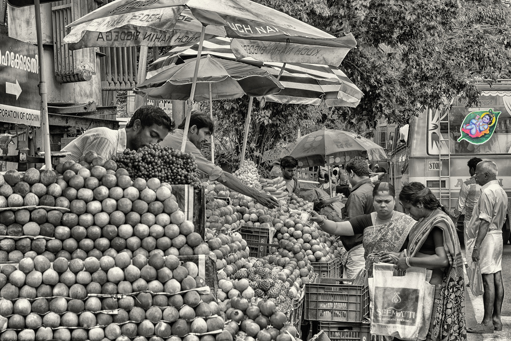 Street fruit shops are very popular not only in Kerala but also in the whole country. The one on the photo is from ferry point in Kerala’s city of Ernakulam.