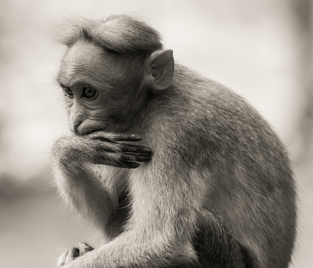 The Bonnet Macaque Monkey is being unique to southern India. Its distribution is limited by the Indian Ocean on three sides and the Godavari and Tapti Rivers along with a related competing species of Rhesus Macaque in the north.