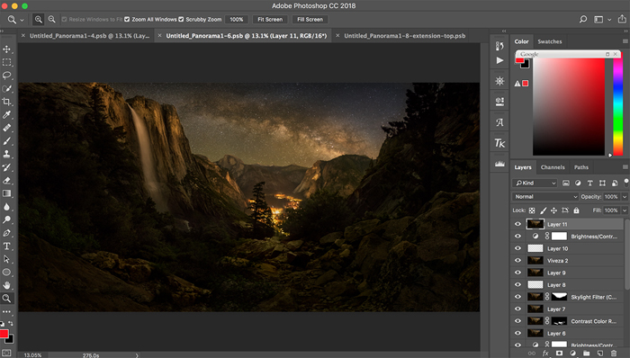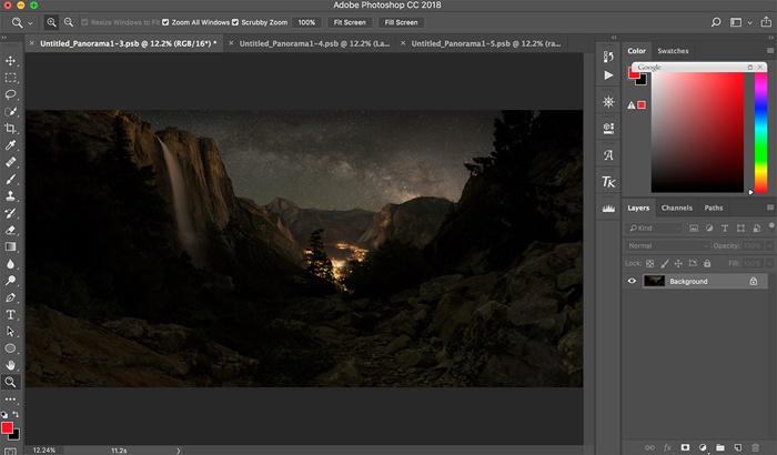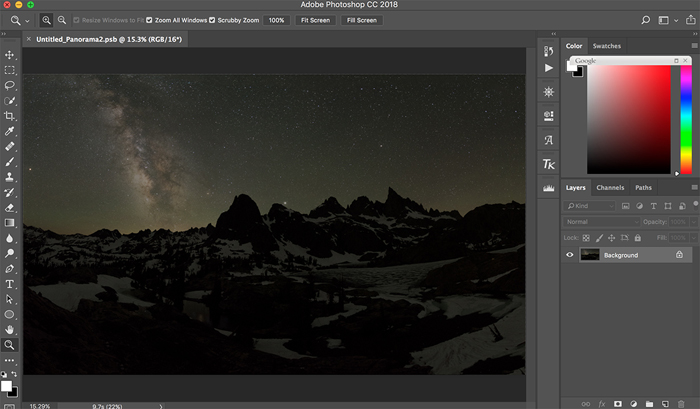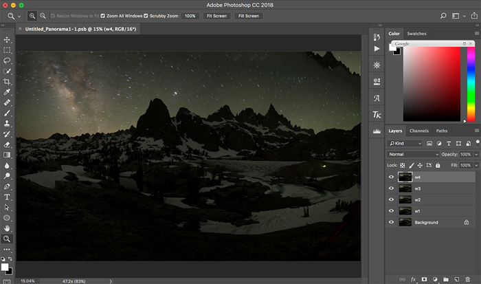 Tip 4: Using a proper focal length for taking panorama shots is important. In general, I take multiple individual shots in portrait format with a focal length between16mm – 20mm, which is a good balance between the wideness and lens distortion when we stitch the pictures together in Photoshop. Try to avoid using an extreme wide focal length, such as 14mm or less, as the merged image produced from Photoshop would likely have a large horizon distortion.