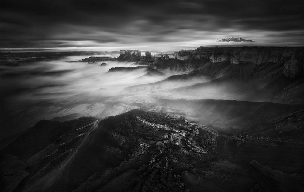 This “A Wise Man” image was taken in Bisti, New Mexico, USA. It was in broad daylight with harsh afternoon lighting. After some searching, I decided to photograph from this “indirect” angle as I think the framing would make the composition much more interesting. I used 10x ND filter to create clouds movement (and enhanced it further in the post-production). The sky is darkened in the post-processing as I intentionally planned to mimic an infrared look. I like how the clouds and angle of the wise man created the mood that I want to convey: we, as human, only get to witness a glimpse of thousands of (or millions of) years that this weathered “wise man” has witnessed. This image constantly reminds me that any light could be good light, do not limit yourself only photograph during magic hours.