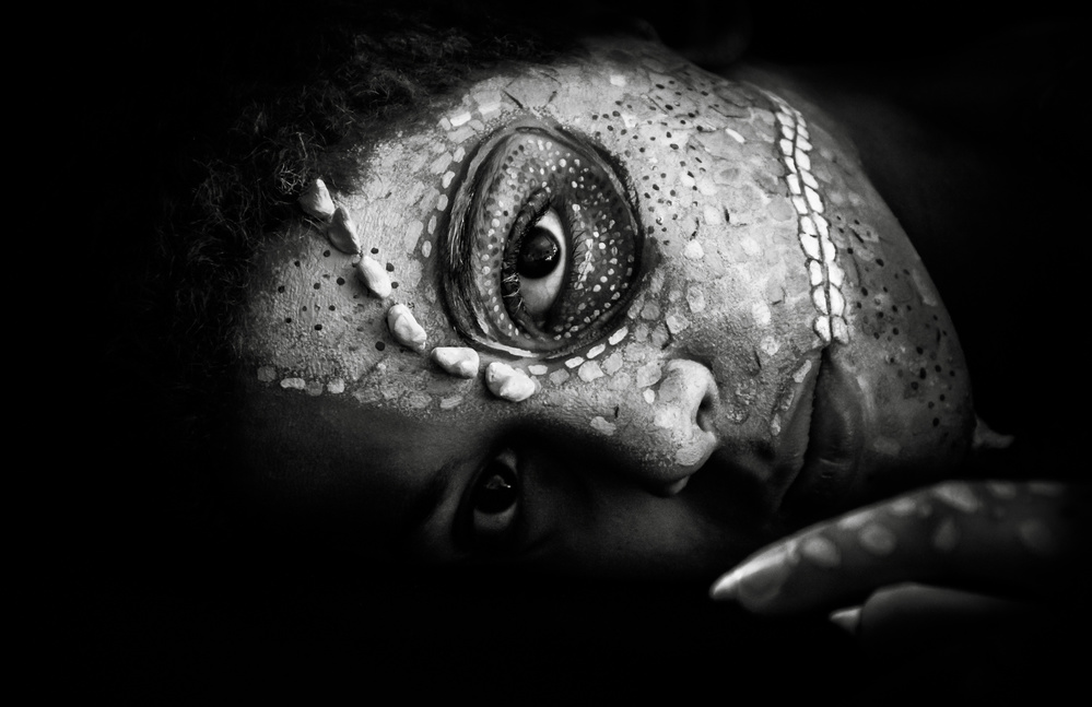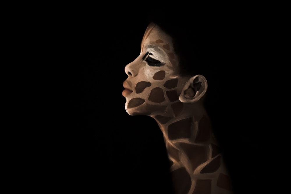 For instance, my series “roots” is about the symbioses of human and animal. Base on the animals, I try to express the essence and bring it to light in an aesthetic way in the form of painting with an intense expression of the model.