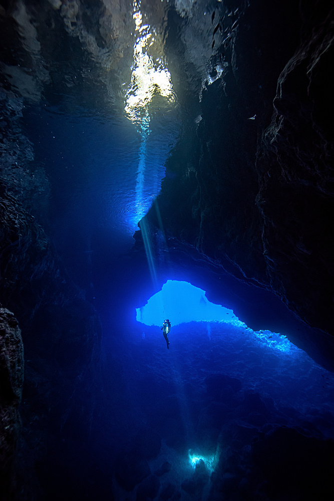 The warm sea water felt cold on my over-heated skin as I floated exposed on the oily calm of the surface. I fitted fins and mask, emptied the buoyancy vest, turned and slid down into the blue depths.