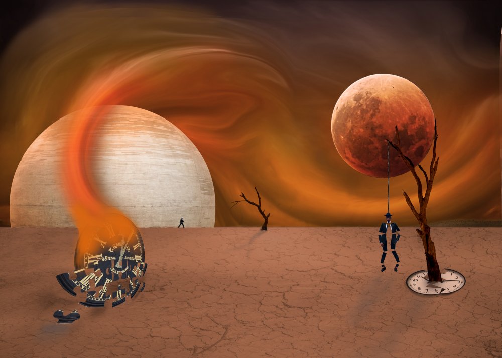 Like most of my surreal images, this is a collage of several images. In 'The End of Time', there are 41 different layers with 26 different images and the file size is just 1GB.