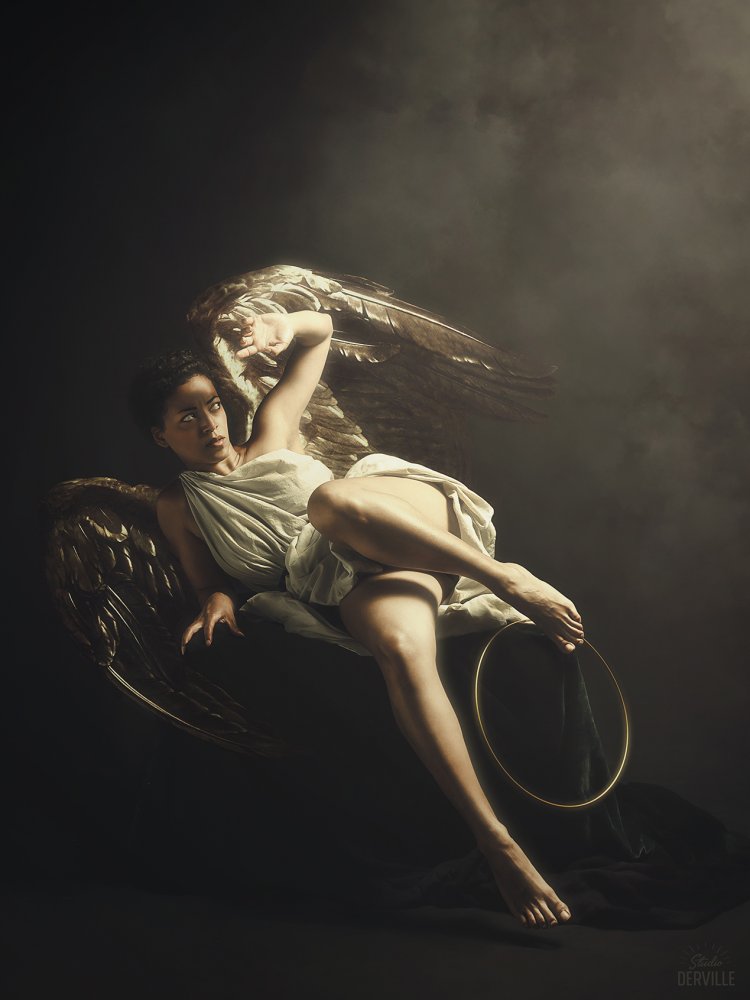 I shoot with a Canon 6DMKII, most often with the Sigma Art 35mm 1.4 or the Canon 50mm 1.4. Regarding the light, I shoot with Godox brand flashes. I use the X-pro trigger, an AD600Pro equipped most often with an octobox (from 80 to 150cm) and 2 Godox V1 on which I place different modelers according to my needs. My essential accessory is the Canon BR6 bluetooth remote control which allows you to focus remotely and which I use for all my self-portraits.