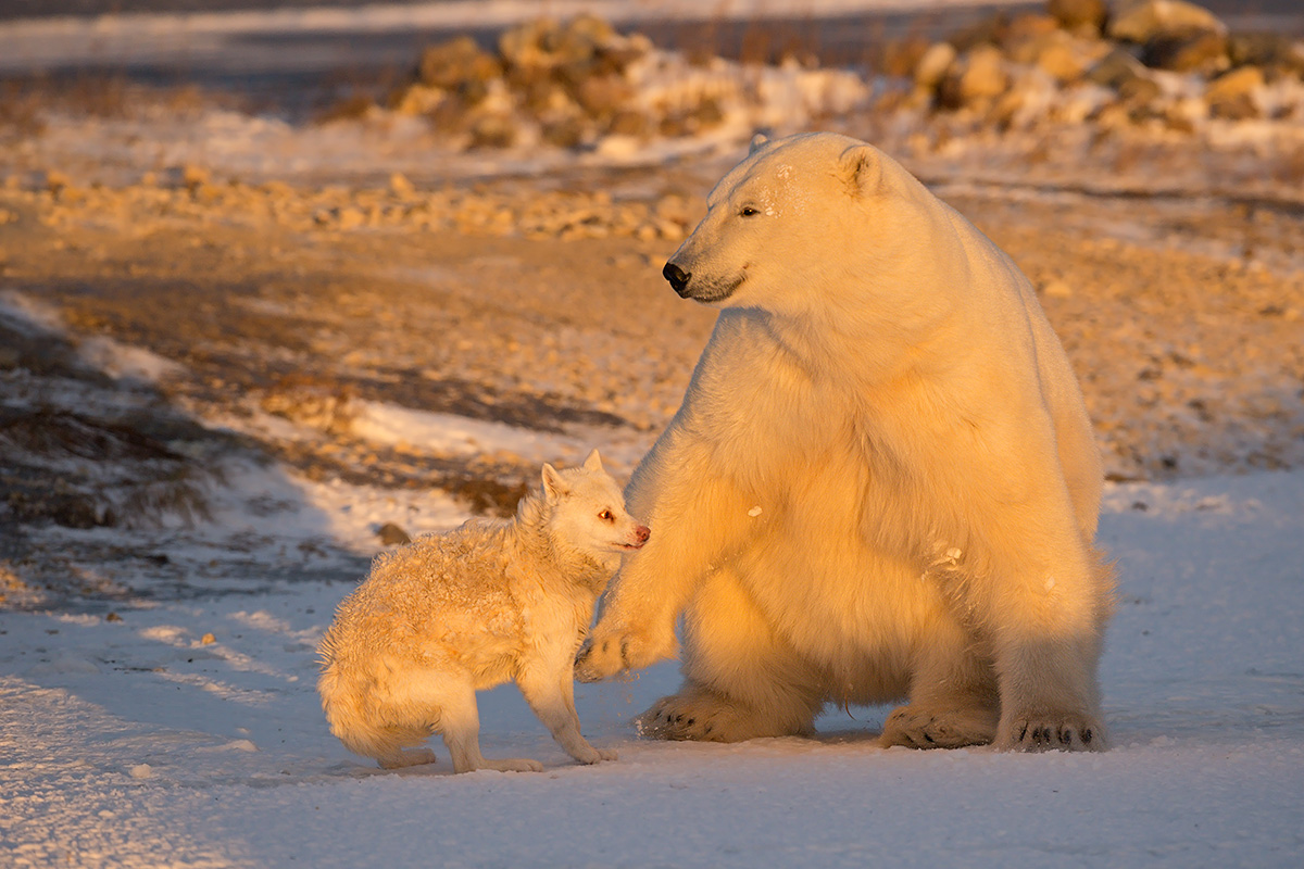 The nickname "Polar Bear Capital of the World" has been given to Hudson Bay because of the large number of polar bears that move inland to the coast in the autumn. It is one of the few places in the North American region where these usually solitary animals congregate in large numbers.