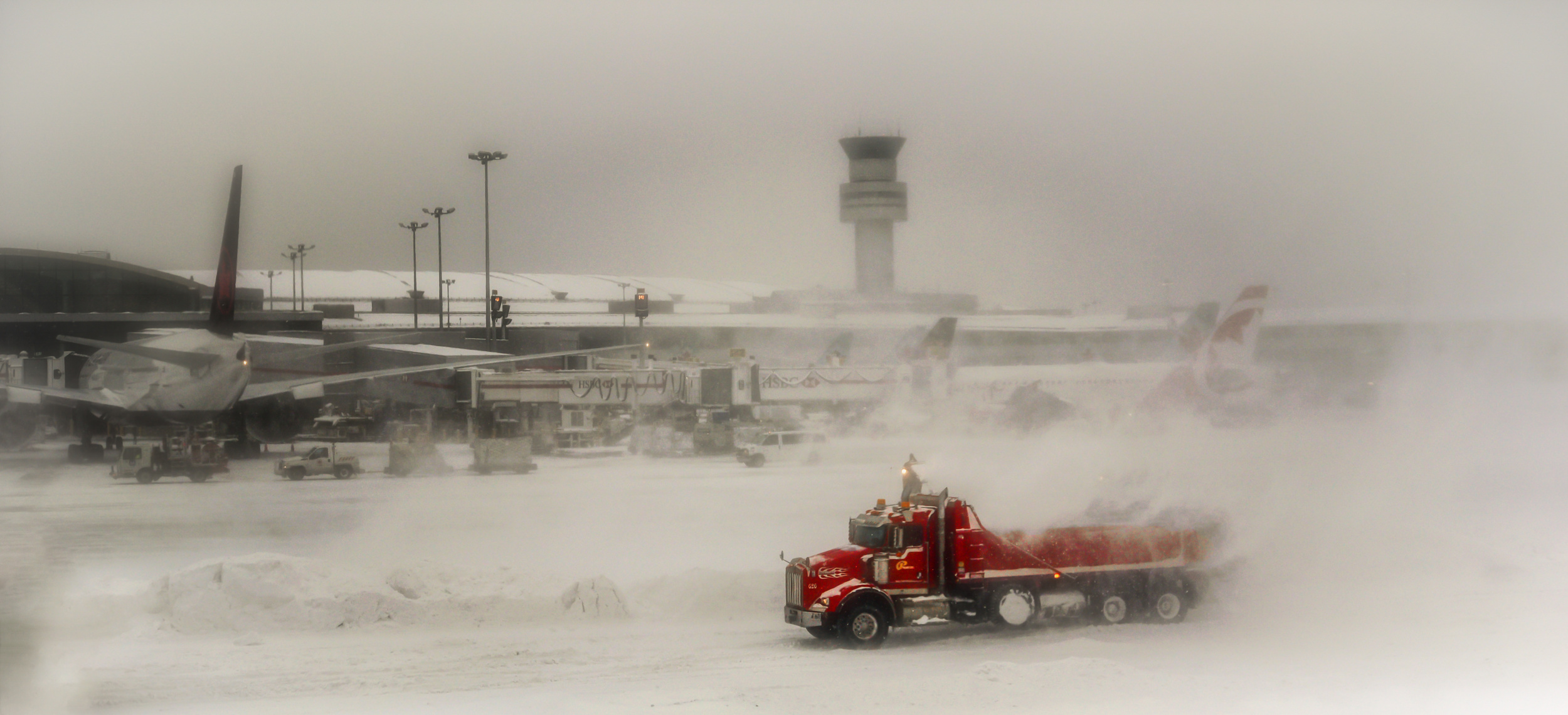 During wintertime around 180 people work on snow removal in 12-hour shifts at Toronto Pearson International Airport. Each shift team operating up to 30 pieces of equipment for ploughing, sweeping, snow-blowing and surface treatment. In addition, a full backup team is always on call to provide extra support as needed. Work conditions can be tough. While equipment operators ride in heated cabs, others – from crews shovelling snow around the gates to electricians maintaining the runway lights – often face temperatures in the minus double-digits, with wind-chill effects that feel even colder. Available high-performance snow blowers can remove up to 7,500 tonnes snows in a hour.