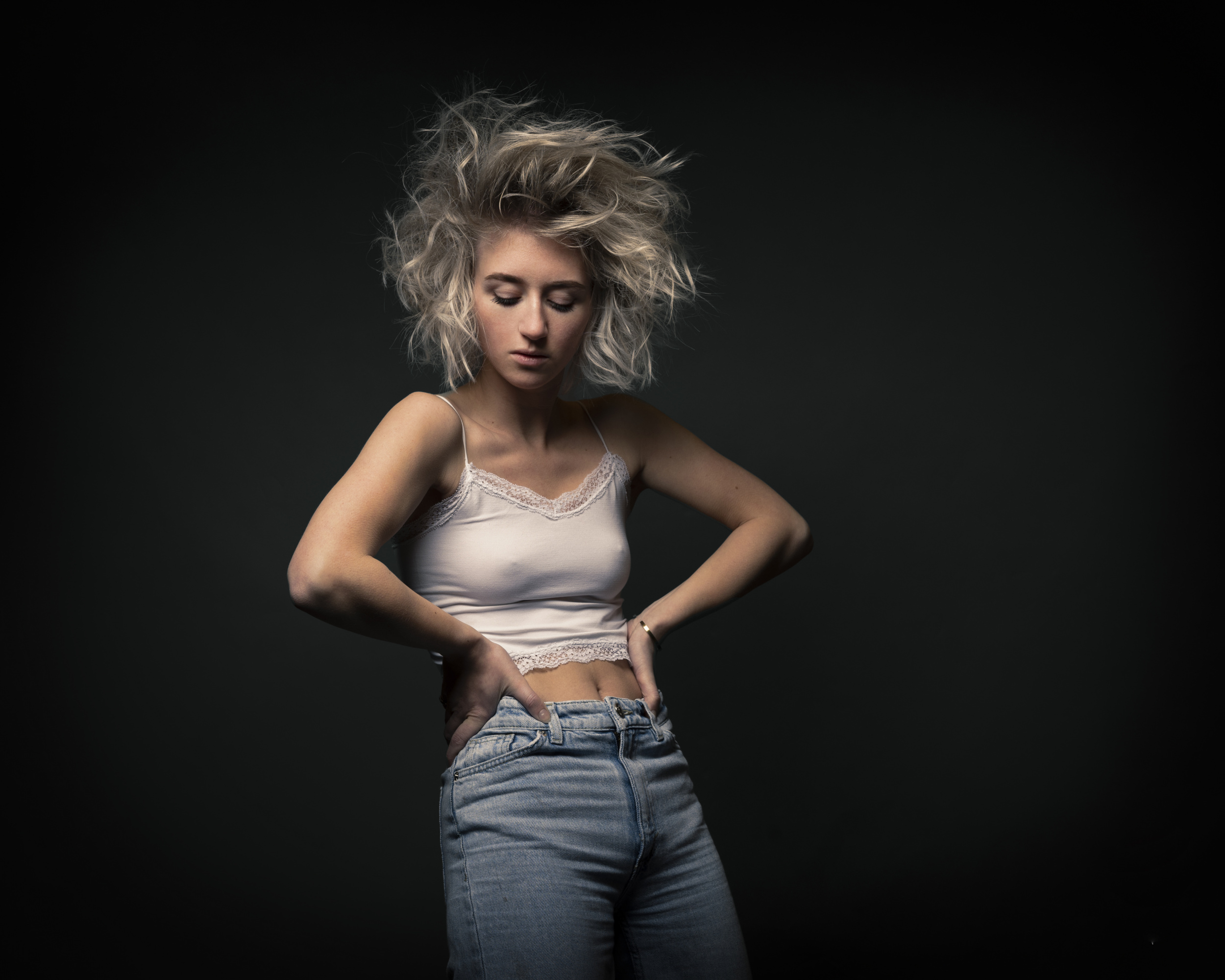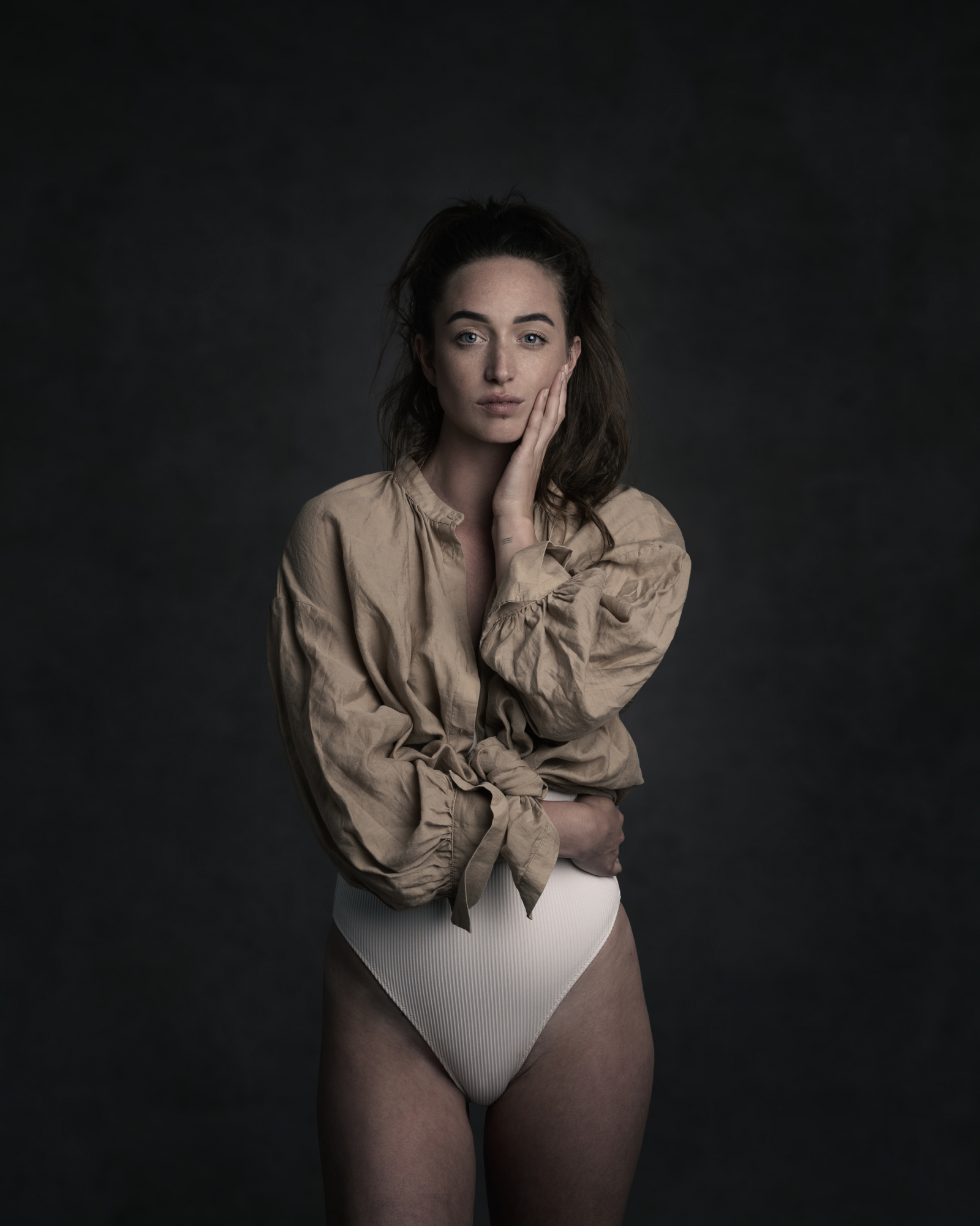 I always start with small talk over coffee and tea to get to know each other a little bit. The models bring their own clothes so we spend some time to decide what to use. I always start with head-shots to get used to each other. After about twenty pictures we review them on a monitor and delete the ones we don’t like. After a few rounds of this we have a collection of pictures we both like. These I send to the model and they can in their own time choose which ones they definitely want to receive after retouching.