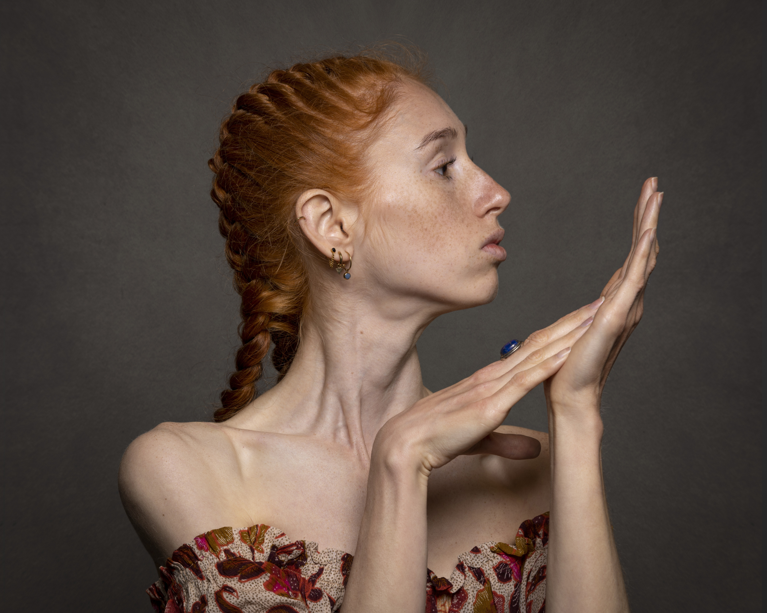 Nowadays, I still use Nikon. Two years ago I bought a Z6 and two prime lenses; the 85/1.8 S and the 50/1.8 S. My lighting is from Elinchrom and the sizes of my round soft boxes are 100 and 175 cm. Sometimes I also use two strip boxes which are 100 by 35 cm. My tripod is a Gitzo and normally I use a grey paper background. For retouching I use Adobe Camera Raw and Adobe Photoshop. My computer is a brand-new Mac Studio and my monitor is from BenQ.