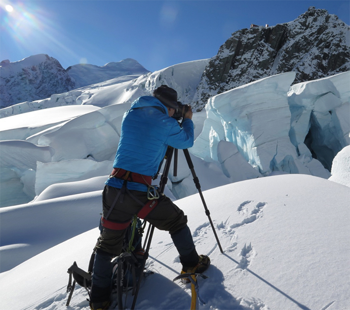 Yan taking photos from the glacier Icefalls (2017)