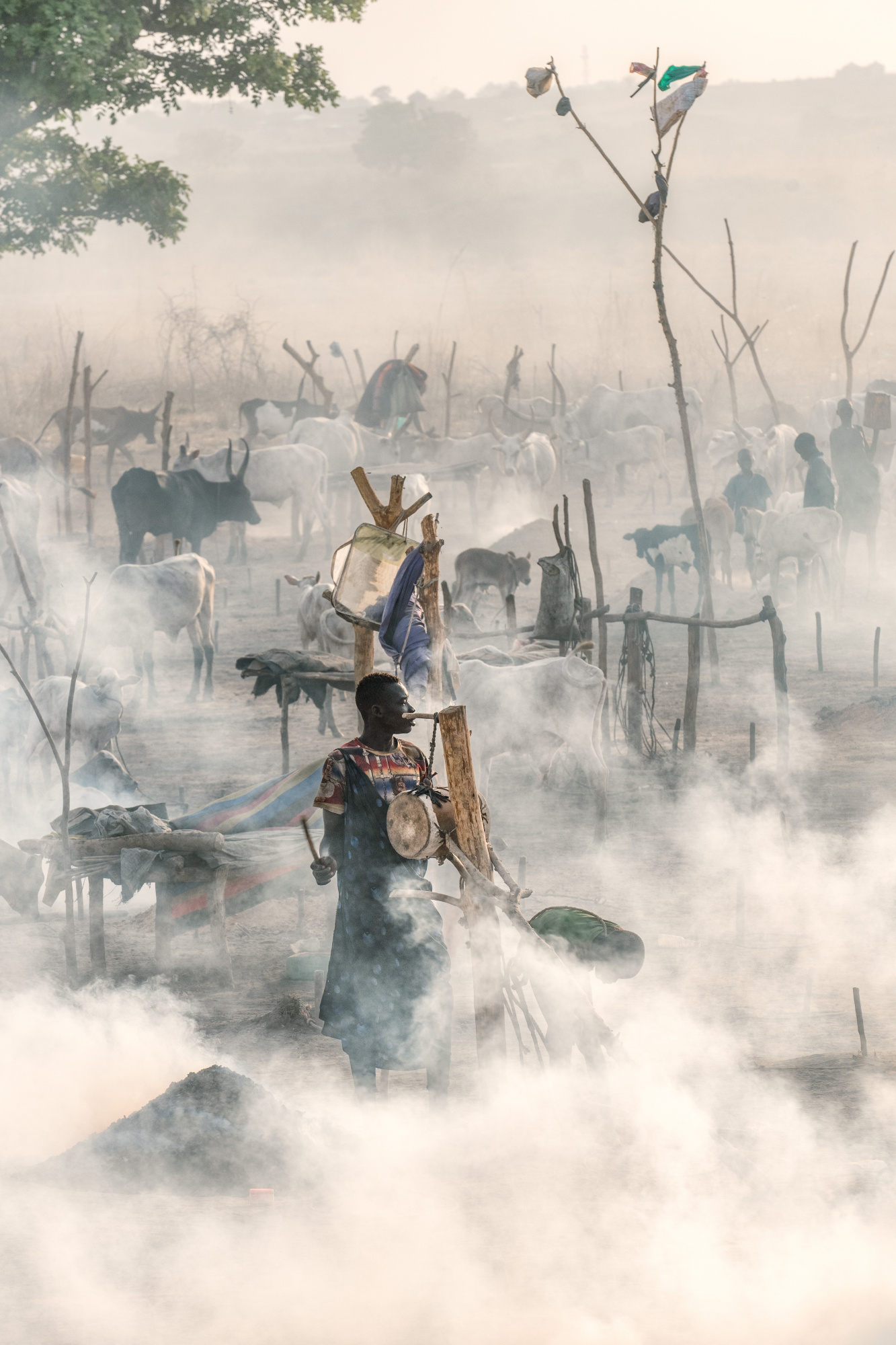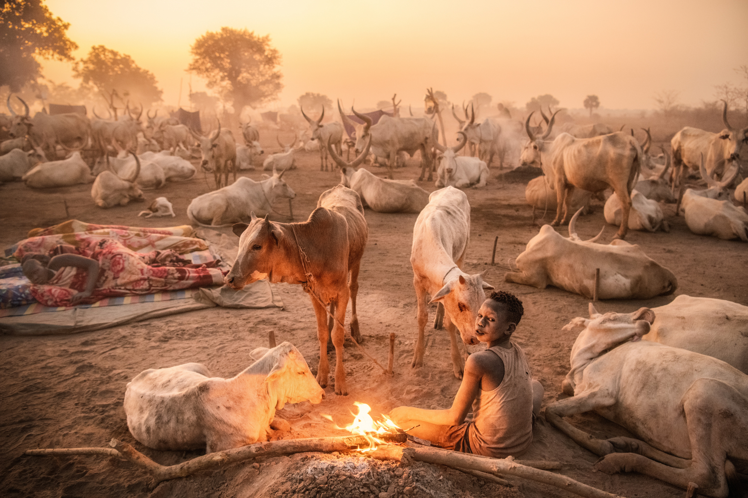 The Mundari cattle camps, seldom visited by outsiders, are quite simply incredible. I saw Sebastiao Salgado’s photos of these camps years ago and there was little change that I could see. The Mundari are friendly and enjoy being photographed. The dust and smoke intermingle to create an inimitable atmosphere. We arrived in the late afternoon when the light was soft and warm with long shadows. The tribe have all their wealth in their cattle and there are thousands of them…...