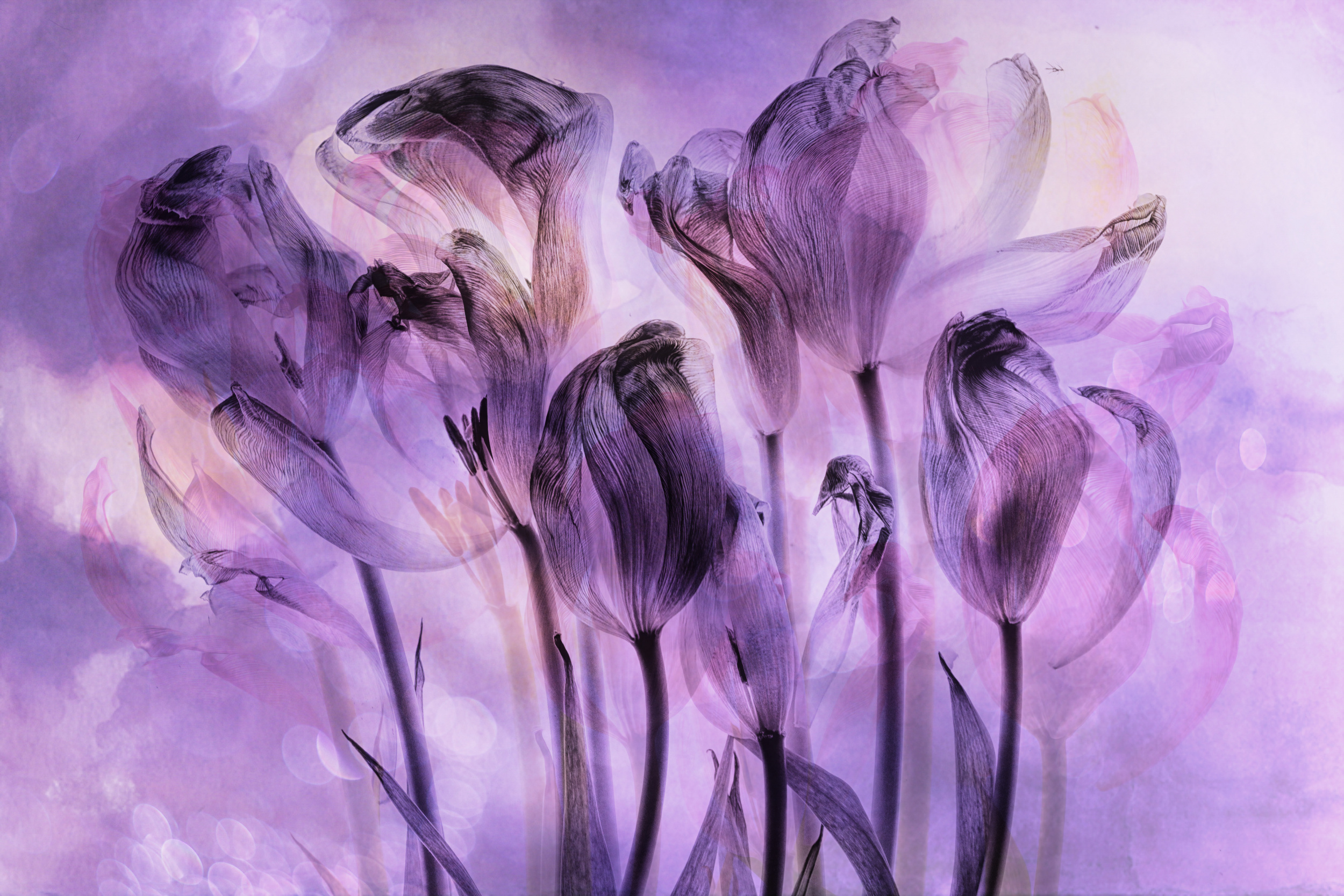 Mostly my forest and macro photos are intuitive. Which means that I try to capture what I see and like. My light-pad photos are based on which flowers or subjects are available and which combinations I can find in my archives counting about ten thousand photos. I use Lightroom and the website Ipiccy. Photoshop still has lots of secrets to me.