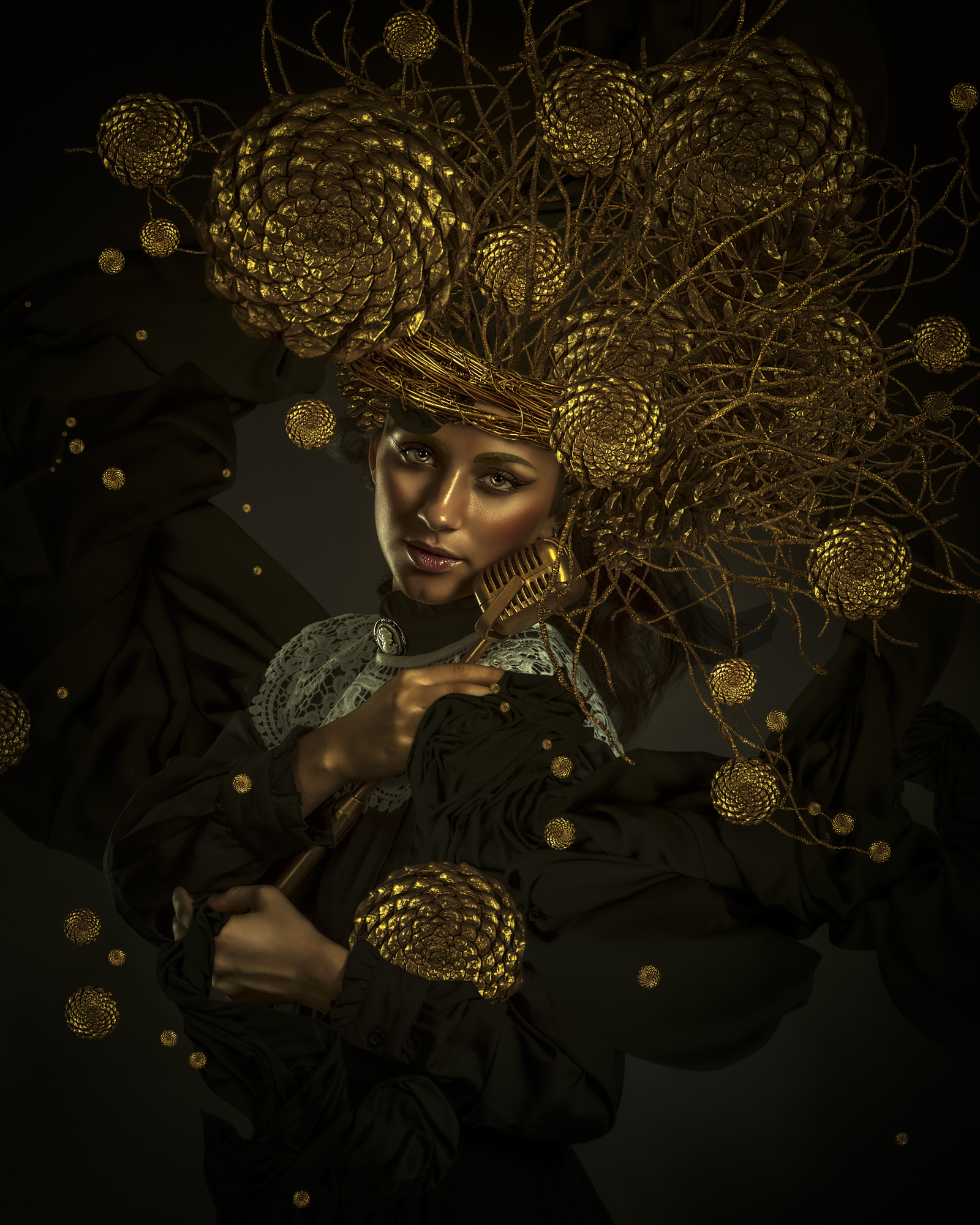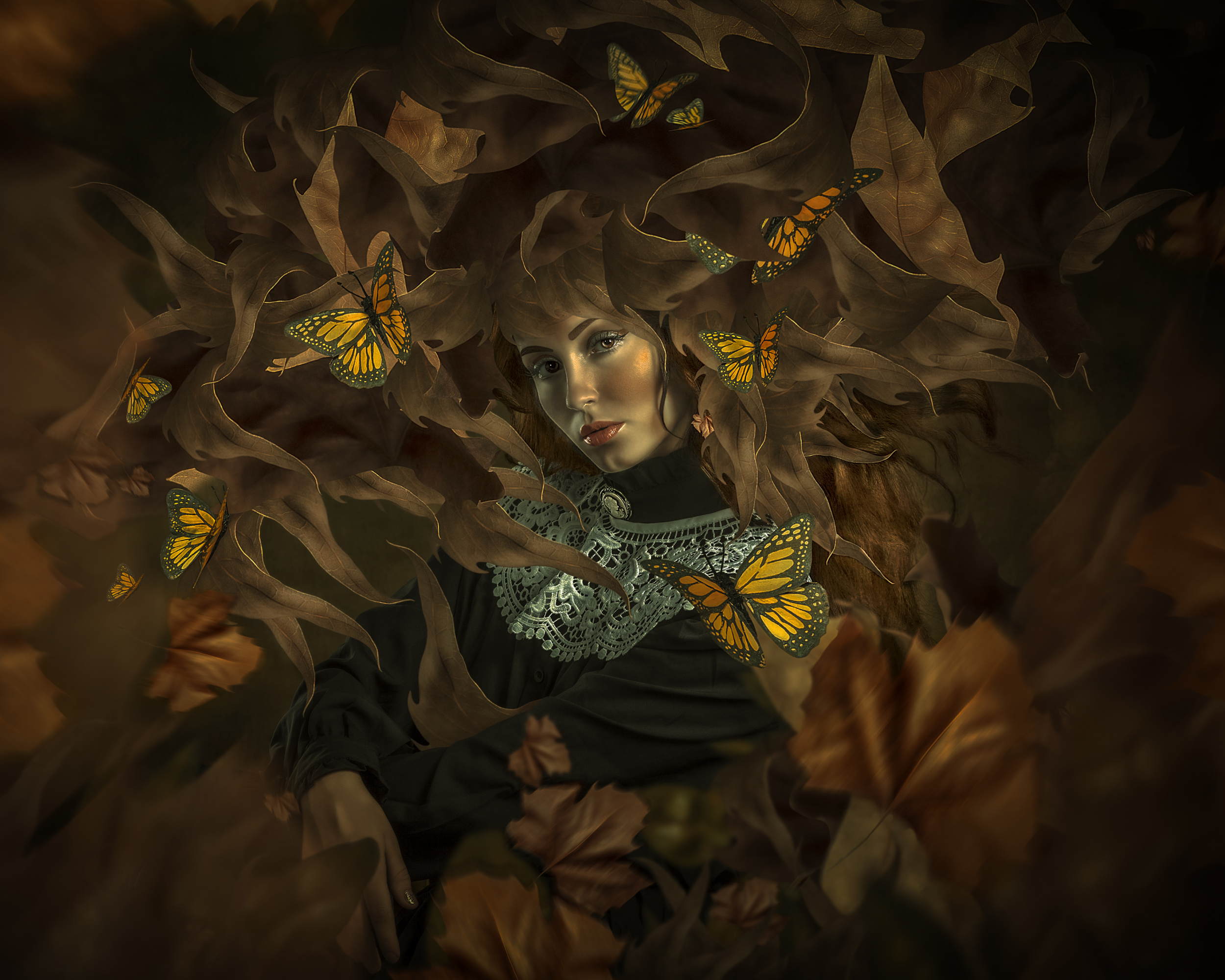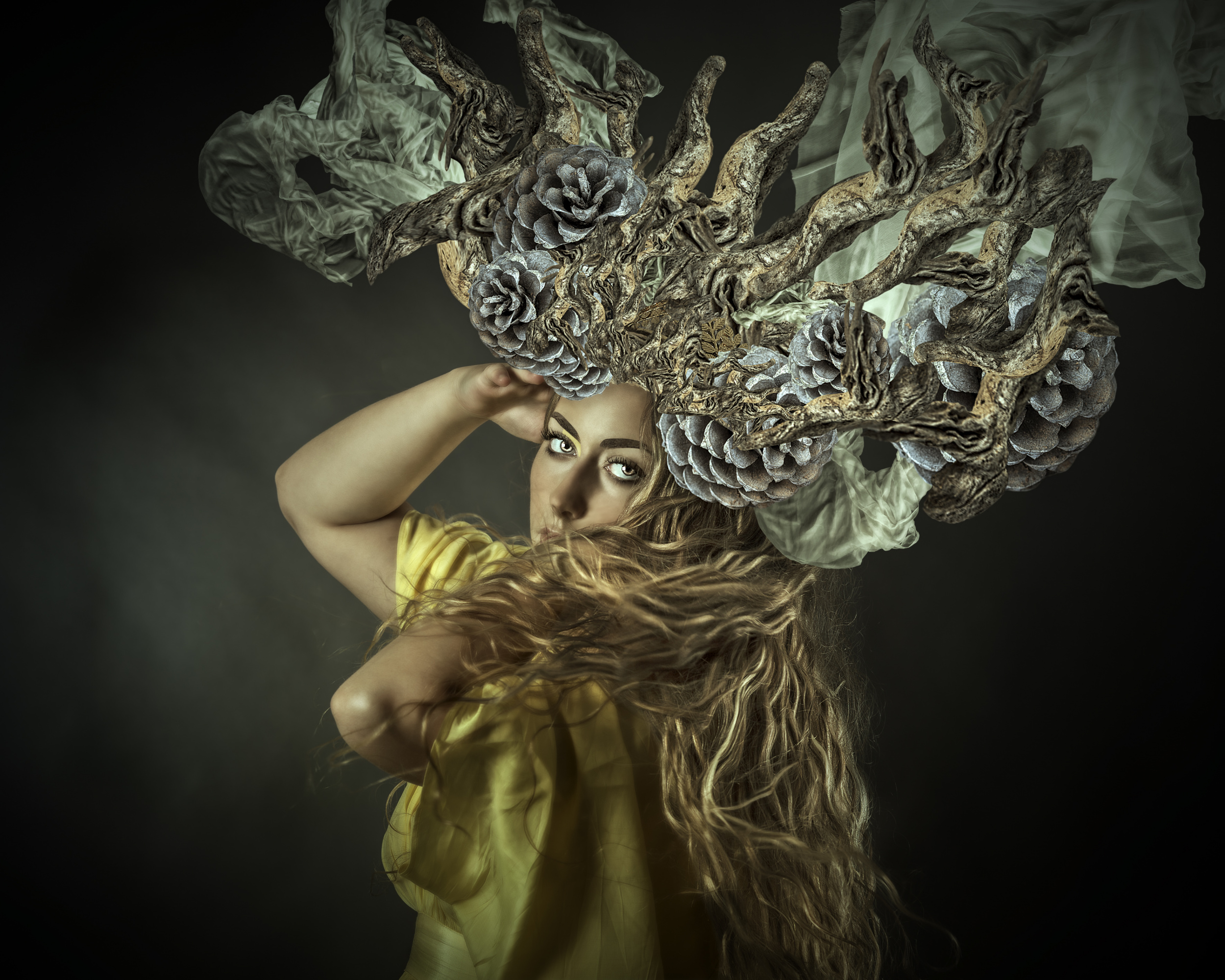 Later, I focus the image with a frequency separation. This method allows me to focus concrete areas of the image. Then I insist on the colour only of certain areas such as cheeks, eyelids, lips and assembly elements, to complete the process using the Dodge and Burn method that provides extraordinary volume in photography. Even though some consider noise as an artistic element, it is unacceptable to me. I rarely use the camera with a sensitivity higher than 100 ISO. It is fascinating to see how the image changes during the post-production process.