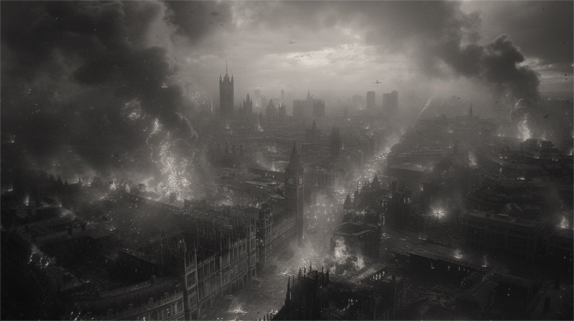 "The bombing of London on September 7, 1940 (II)". Generated on Midjourney, by Yan Zhang.
