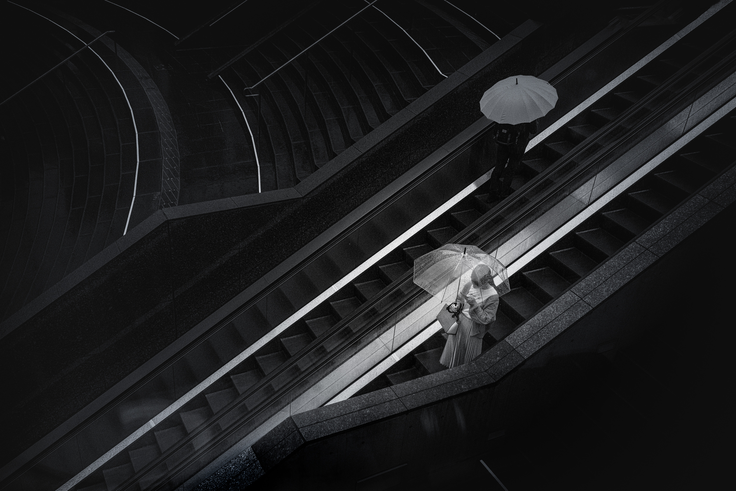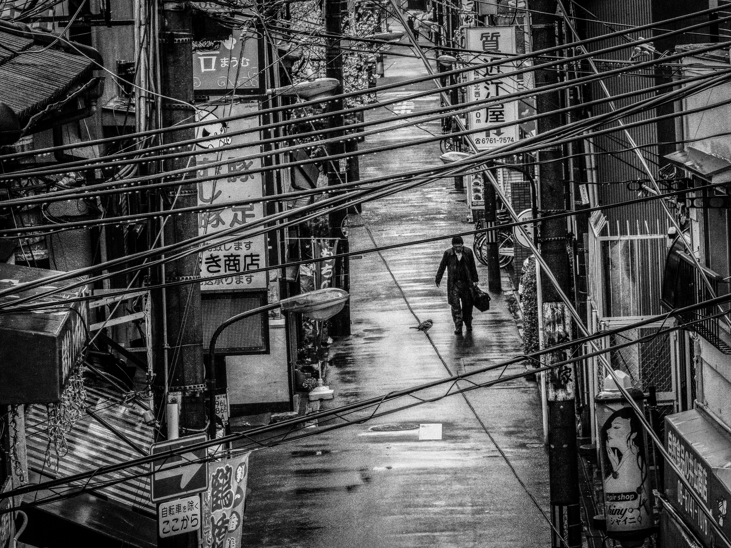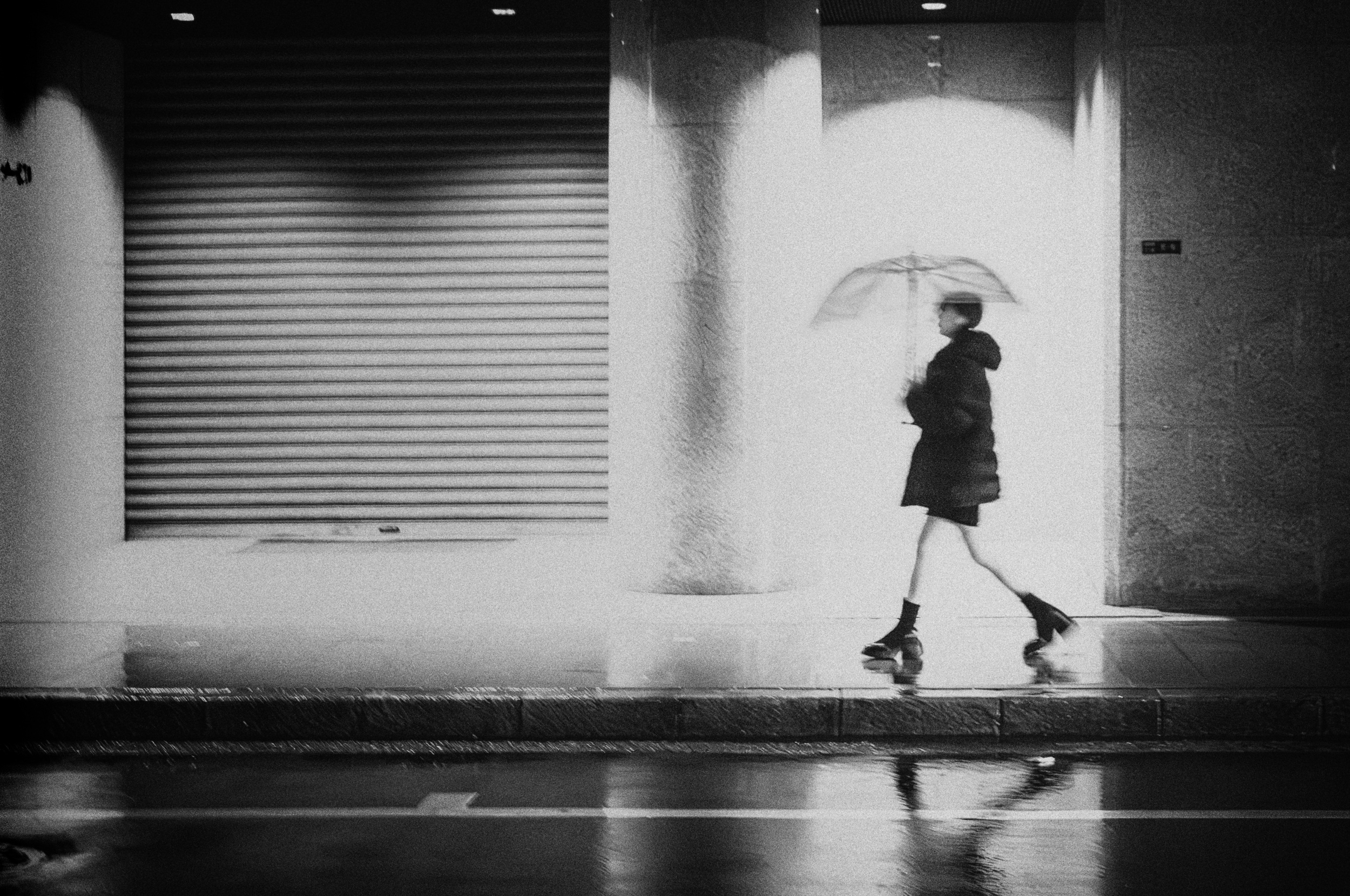 I enjoy walking and photographing alone in unfamiliar cities, often capturing encounters with the unknown and serendipitous moments. I love the urban landscapes of towering buildings and the atmosphere of crowded alleyways, so I travel about two hours each way to places like Osaka and Kyoto. I also have a passion for photographing rainy scenes and have focused on the theme of 'rain' in my work.