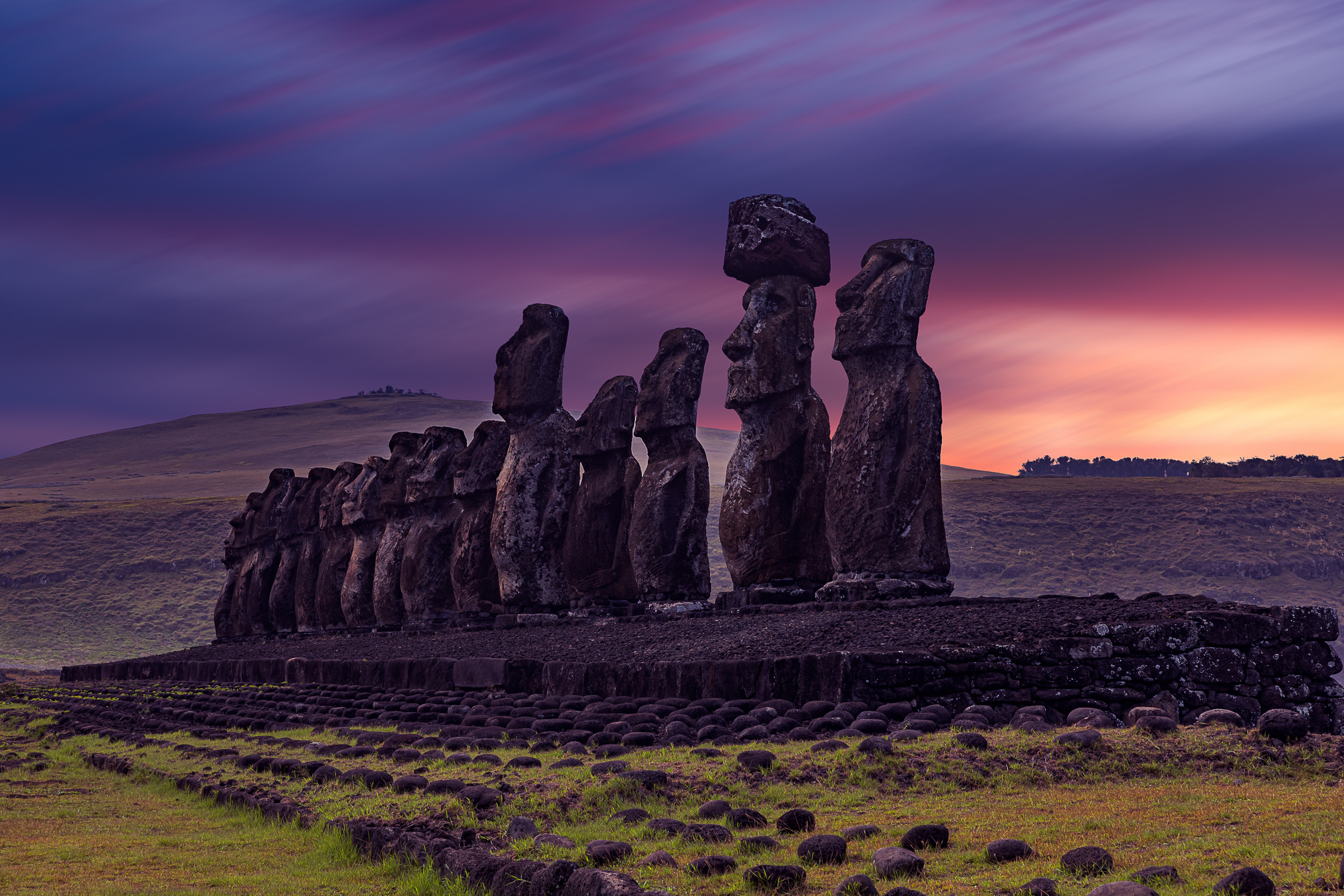 The 900-year-old site has a turbulent history, with the most tragic event occurring on 23 May 1960, when a tsunami overturned the entire site and washed it inland! The moais, which weighed up to ninety tonnes, were pushed some fifty metres away! The tsunami wave, estimated to be eleven metres high, was triggered by a magnitude 9.5 earthquake off the Chilean coast near Valdivia.