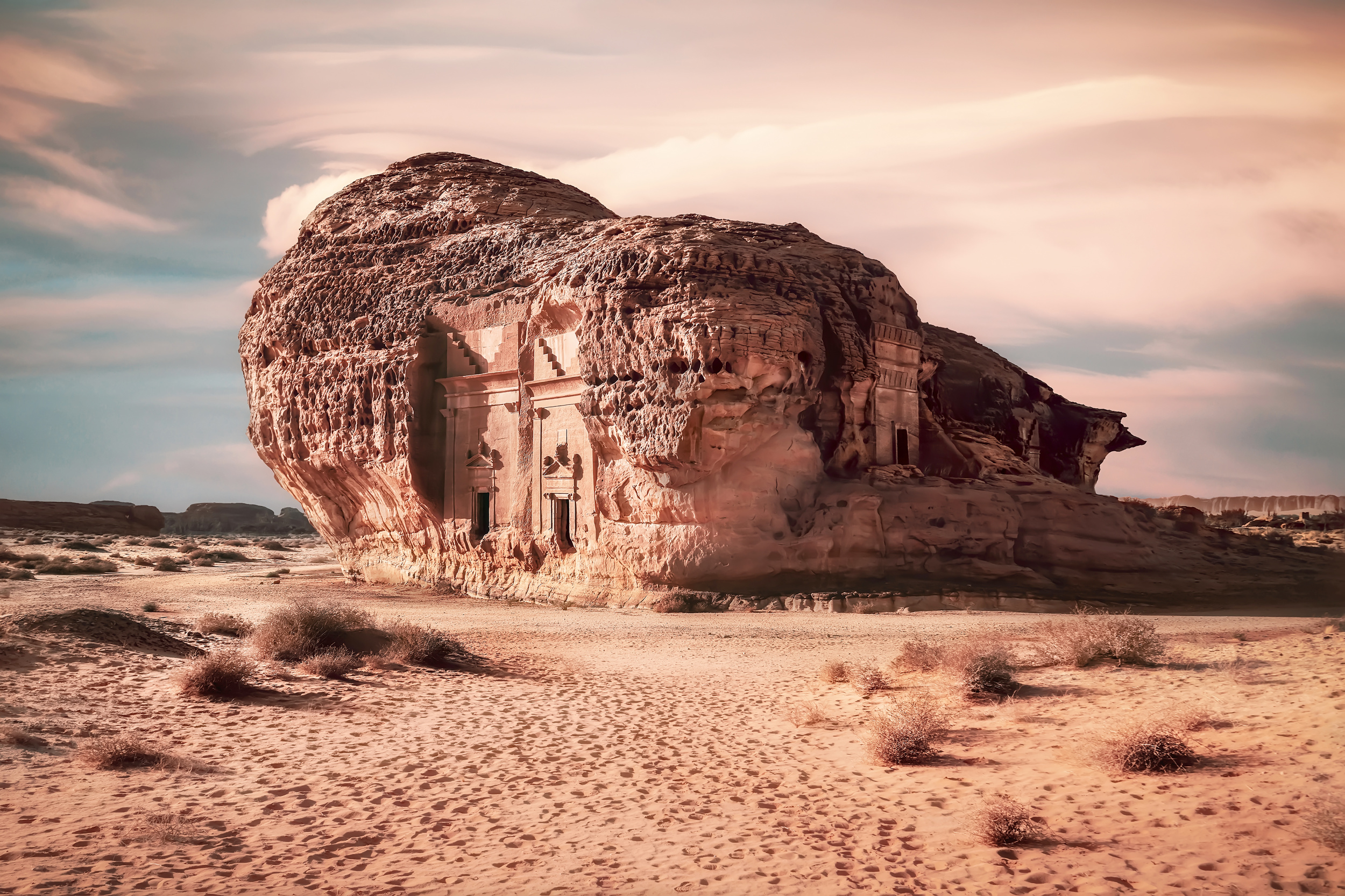 Jabal Al Ahmar in Hegra, an UNESCO World Heritage Site, roughly translated as ‘The Red Mountain’ is located in the Saudi Arabian desert, close to the majestic Al-Ula Valley. Once an important trading hub for the Nabataean people, Hegra is now the centre of a groundbreaking project that combines science and art and introduces us to a Nabataean woman for the first time.