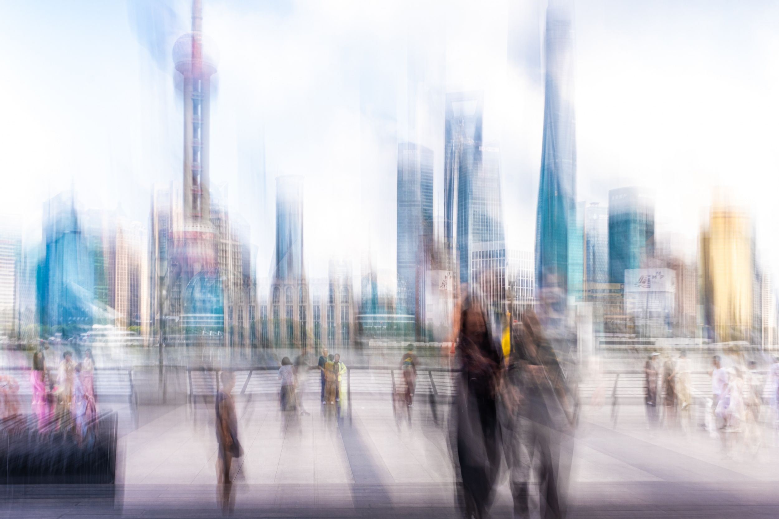 On this day, I had a neutral density filter on my lens as the sky was bright and sunny, and I was experimenting with longer exposure times. The Bund was crowded as usual, but I wandered around until I found a quieter spot. In a busy area, too many people in the frame during a long exposure would blur into a chaotic, indistinct mass - a visual 'muddy' effect I wanted to avoid. I eventually settled on a location with Shanghai's iconic skyline in the background, with people moving through the scene in all directions.