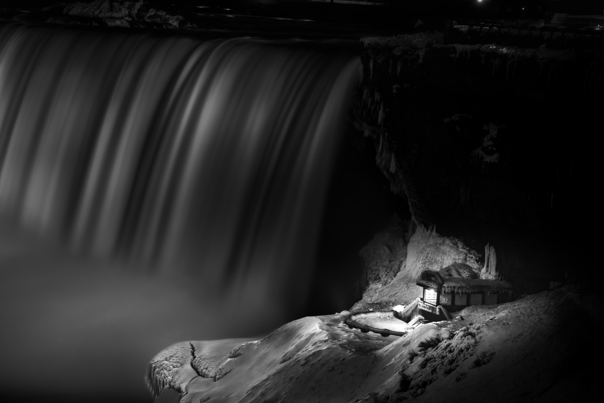 'frozen house under Niagara fall at night' by Lei Yang