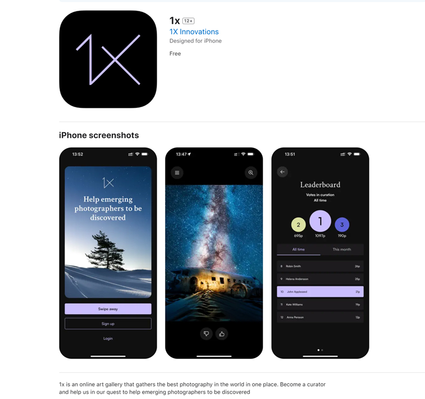 We are pleased to announce that we have developed a new 1x curation app for iPhone.