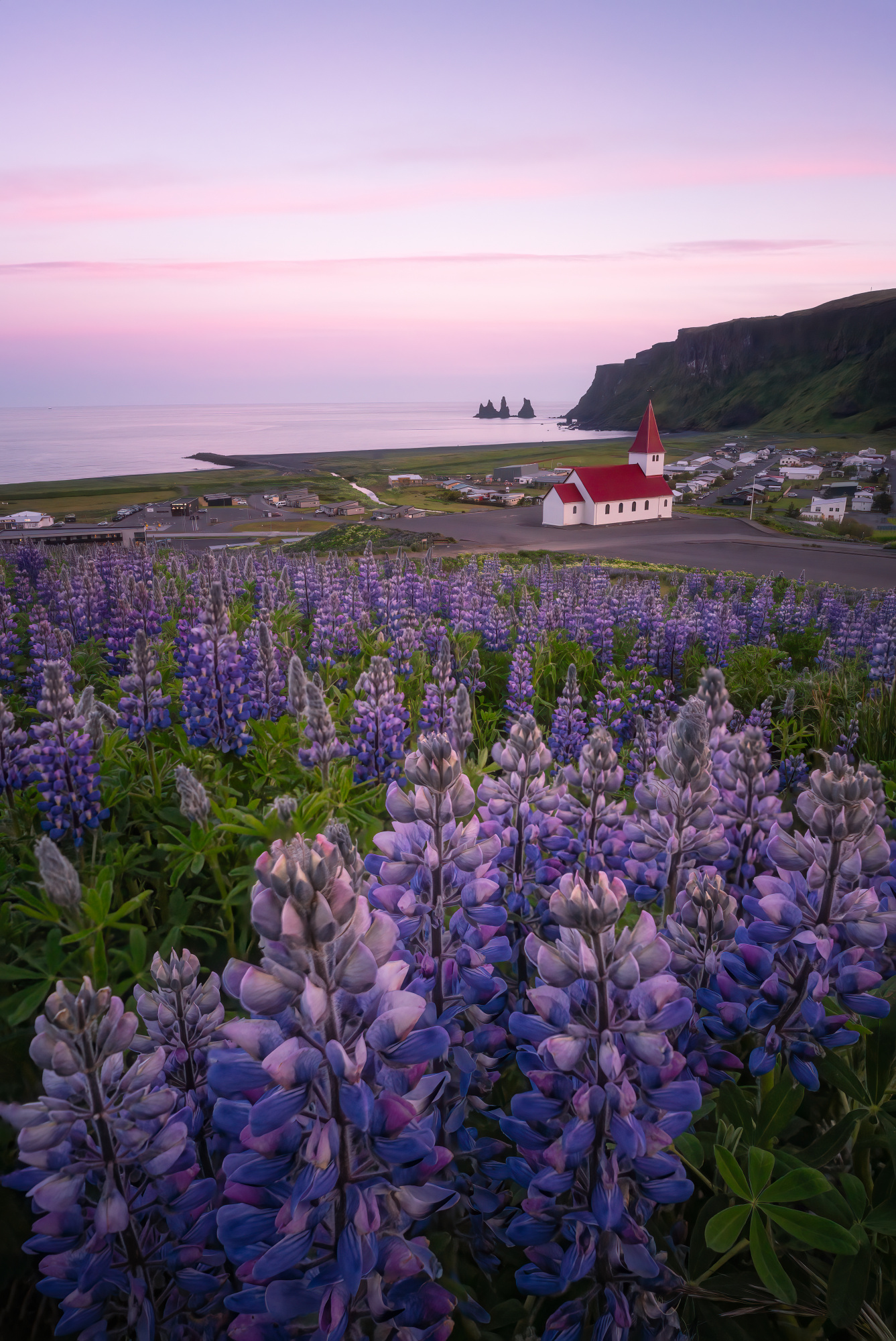 'Lupinus and Vik Church'