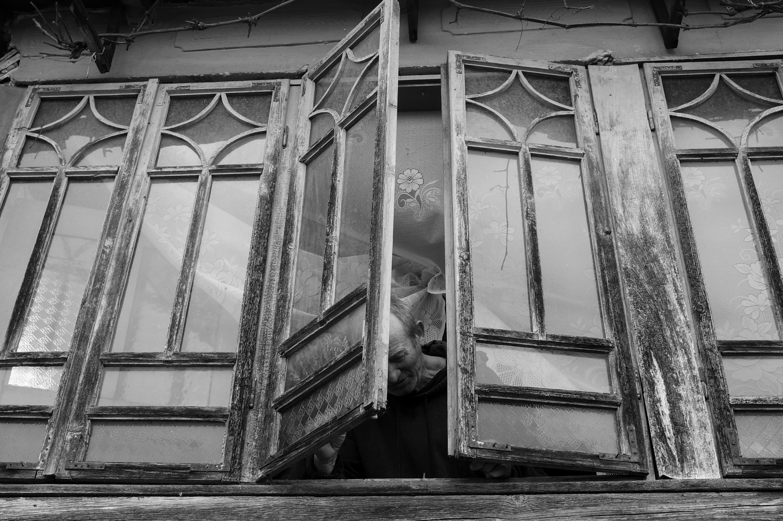 I have a photo (“Born”)) that I took while visiting Dianu, a small but very nice village in Romania. I was there a couple of times with my former “Fotopoetica” colleagues, and our main contact person there is a local photographer, Ion Cirstea (Nea Ionică). He was with us on every visit, helping us get to know the people and quickly establish contact with them. For this special photo, we were visiting an old house that was no longer inhabited. At some point, while we were inside taking photos, someone asked him to open the window. So, I ran outside, stood in front of the window, and waited for the action. The way he opened the window—perhaps because it was an old window, or maybe because he wasn't quite tall and struggled a bit—gave the final photo an enigmatic look, leaving the viewer to wonder what he was actually doing there.